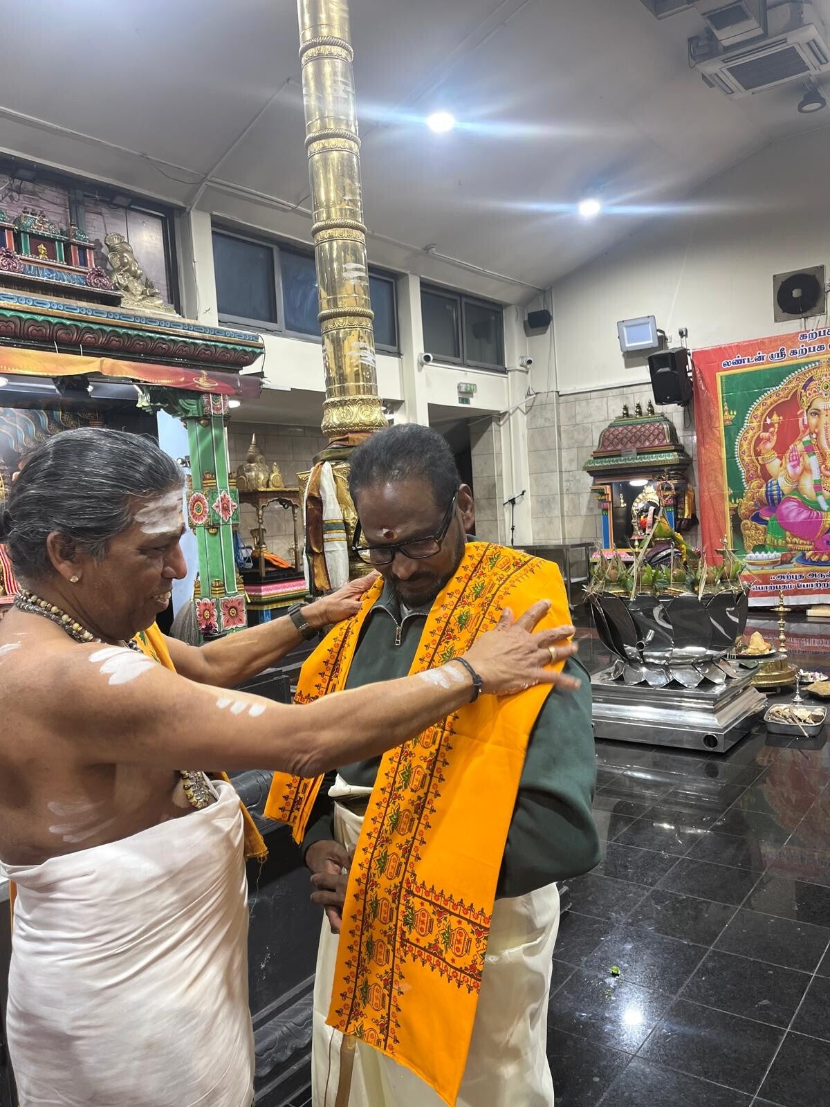 .10.12.2025 இரவு பிரம்ம ஶ்ரீ. பிரபாகரசர்மா அவர்களது பிறந்தநாளை முன்னிட்டு லண்டன் கற்பக பதி ஆலய நிர்வாகத்தினர், சிவாச்சாரியார்கள் சார்பாக நடைபெற்ற விசேட கௌரவம்.